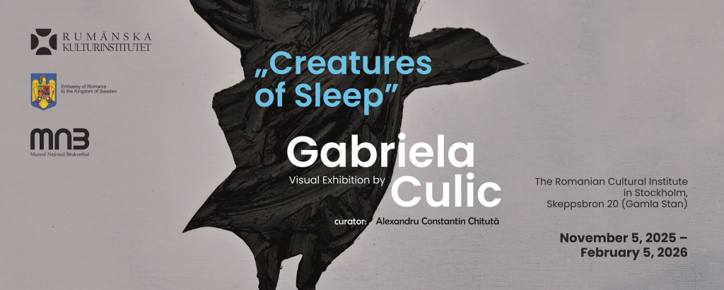 Den rumänska konstnären Gabriela Culic presenterar sin utställning Drömmens gestalter på Rumänska kulturinstitutet i Stockholm. Vernissagen äger rum den 5 november 2025 kl. 18.00, i närvaro av konstnären själv och curatorn Alexandru Constantin Chituță från Brukenthalmuseet i Sibiu. Utställningen arrangeras av Rumänska kulturinstitutet i Stockholm i samarbete med Rumäniens ambassad i Sverige, Brukenthalmuseetoch AnimaWings,med stöd från EVERGENT Investments S.A.