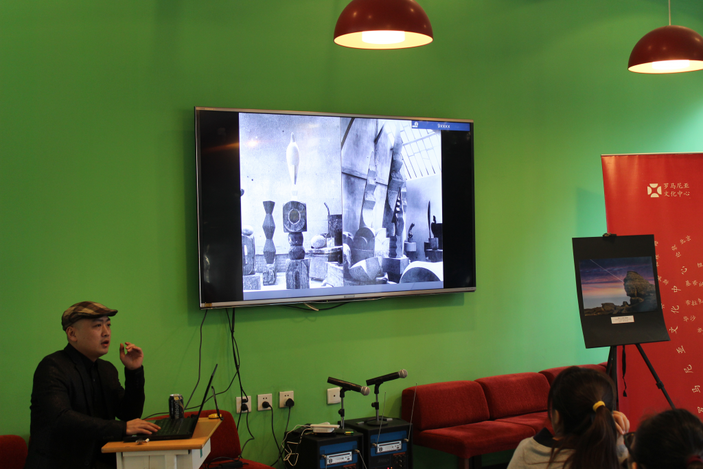 Apoi, prof.univ.dr.Zhi Min, unul dintre statornicii colaboratori ai institutului, cunoscător fin al operei lui Brâncuși și care a editat numeroase articole în China despre marele nostru artist, a prezentat personalitatea și opera lui Brâncuși, cu exemplificări ale lucrărilor artistului.