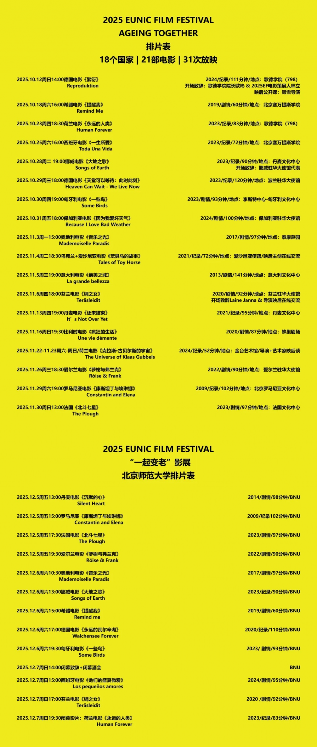- December 5–7, 2025 (Fri–Sun) | Screenings & Closing Events on Beijing Normal University