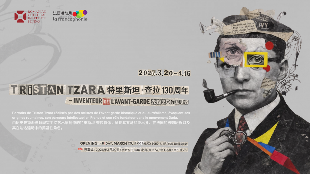 În perioada 20 martie – 16 aprilie 2026, Institutul Cultural Român de la Beijing organizează expoziția „Tristan Tzara 130 — Inventatorul Avangardei”, la sediul său, vernisajul având loc de Ziua Internațională a Francofoniei, vineri, 20 martie 2026, de la ora 11:00, în prezența membrilor corpului diplomatic, a reprezentanților instituțiilor culturale francofone, precum și a mediului academic. Evenimentul marchează celebrarea a 130 de ani de la nașterea lui Tristan Tzara (1896–2026), figură fondatoare a avangardei europene.