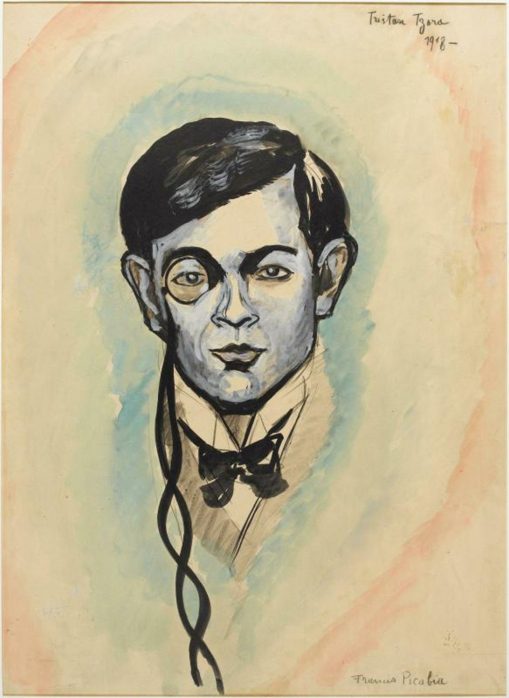 2. „Portretul lui Tristan Tzara (Samuel Rosenstock, 1896–1963), poet francez, animator al mișcării Dada”, desen, cca. 1916 — de Francis Picabia (Francis-Marie Martinez de Picabia) (1879, Franța – 1953, Franța), colecție: Centre Pompidou, Paris;