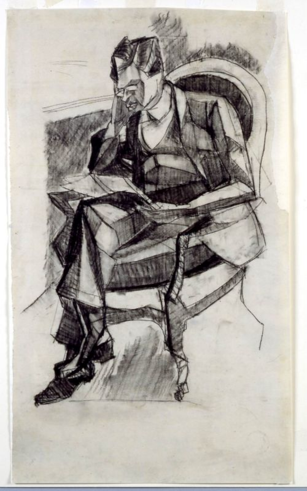 6. „Portretul lui Tristan Tzara”, cca. 1916, grafit pe hârtie, 665 × 400 mm — de Marcel Janco (1895, România – 1984, Israel), The Israel Museum, Ierusalim; donație Ruth Burger, SUA, în memoria fratelui său Benjamin Golin; © Dvora Janco, Tel Aviv