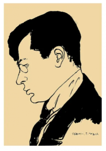 9. „Portretul lui Tristan Tzara”, stilou și cerneală neagră și creion albastru pe hârtie — de Moise Kisling (1891, Polonia – 1953, Franța), colecție privată