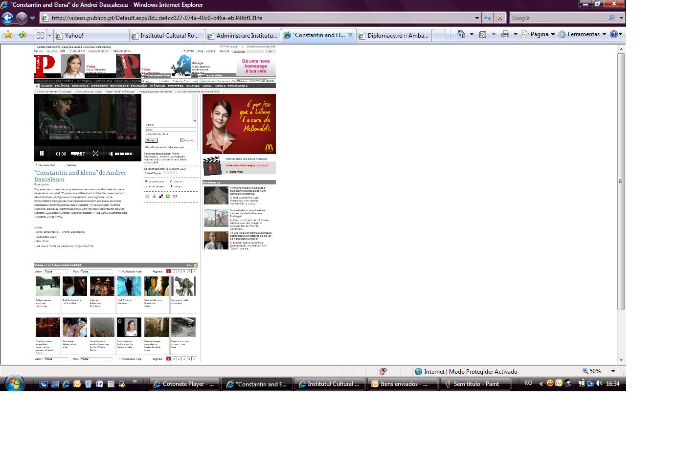 ICR Lisabona participă pentru prima dată la cel mai important Festival de film documentar din Portugalia doclisboa cu filmul de lung metraj Constantin şi Elena de Andrei Dăscălescu. Organizat de către Apordoc (Asociaţia Portugheză pentru Film Documentar) http://www.apordoc.org/ în perioada 15-25 octombrie 2009, doclisboa prezintă, în premieră, cele mai bune documentare ale ultimii stagiuni şi reuneşte o serie de programări în afara competiţiei, incluzând retrospectiva unui autor celebru. Constantin şi Elena participă la Doclisboa la secţiunea Competiţie internaţională şi va fi proiectat şi va fi proiectat în două sesiuni: 17 octombrie, 21h00, Cinema Londres (Sala 2); 21 octombrie, 10h45, Cinema Londres (Sala 1) şi, în prezenţa regizorului, în data de 23 octombrie, 2009, la orele 21h00, la Culturgest/ Grande Auditório (Fundação Caixa Geral de Depósitos - Culturgest, Edifício Sede da Caixa Geral de Depósitos, Rua Arco do Cego, Piso 1, 1000-300 Lisboa).