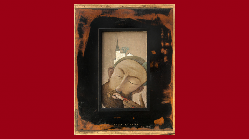 La început, a fost pictura - seria de șaisprezece picturi "Mustața lui Dali", creată de Felix Aftene. Apoi, Lucian Dan Teodorovici a adăugat cuvântul - și asa a apărut pictoromanul (publicat la editura Polirom), în care cele șaisprezece lucrări s-au îmbogățit cu șaisprezece corespunzătoare capitole, savuroase și delirante, una dintre cele mai frumoase - dar și una dintre cele mai populare - cărți ale anului 2020. Cum toate lucrurile bune vin câte trei, artistul video Andrei Cozlac a adăugat o a treia dimensiune acestei colaborări artistice și a imaginat o instalație care proiectează "stricto sensu" cuvintele scriitorului peste un obiect mixed media reproducând o lucrare din seria "Mustața lui Dali" si adaugă elemente vizuale suplimentare, efemere și cinetice, portretului.