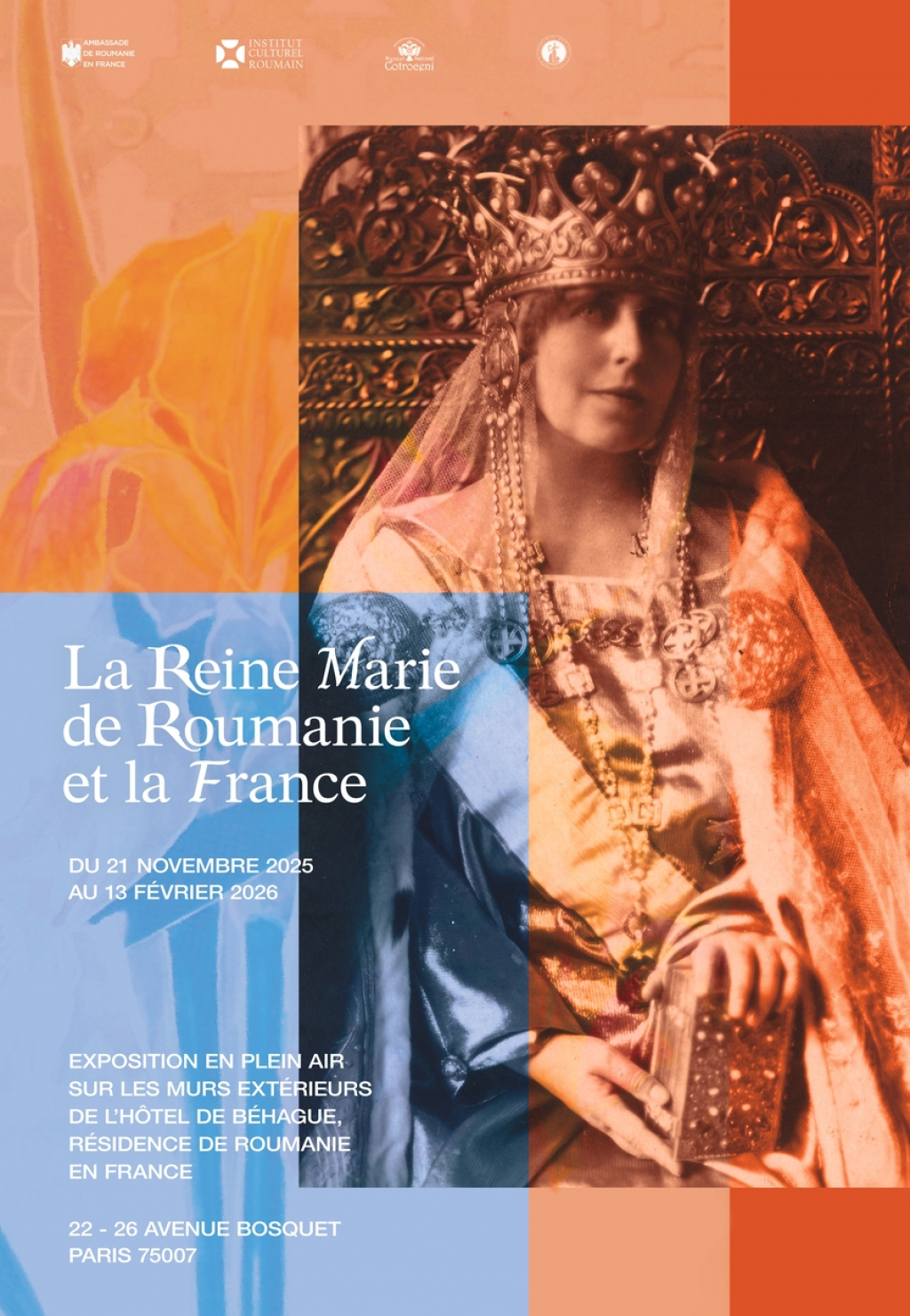 Cu ocazia împlinirii a 150 de ani de la nașterea Reginei Maria a României (1875–1938), Institutul Cultural Român de la Paris dedică o expoziție acestei figuri emblematice a istoriei românești și europene. Regină carismatică, Maria a știut cum să promoveze România pe scena internațională și mai ales cum să întărească legăturile cu Franța, având un rol esențial în diplomația culturală și politică a epocii sale. Binecunoscută pentru eleganța, curajul și modernitatea ei, Regina Maria a României a lăsat o moștenire culturală care și astăzi continuă să inspire și să marcheze istoria țării.
