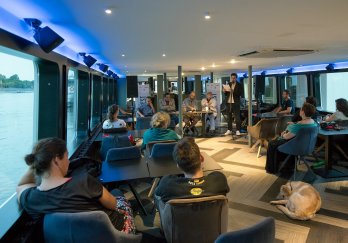 Sâmbătă, 2 septembrie 2017, ora 18.30, în stația de vapor din Piața Jászai Mari, va avea loc evenimentul care îl are ca invitat pe Cristian Teodorescu. Acesta va purta un dialog cu Lajos Parti Nagy despre romanul „Medgidia, orașul de apoi” și despre interacțiunea istoriei fluviale a celor două țări (România şi Ungaria). Moderatorul discuției va fi László Potozky.