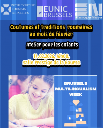 1. Astfel, în data de 11 februarie 2026, în colaborare cu Asociația EuropaNova și cu profesorii din cadrul programului Limba, cultură și civilizația românească în Belgia,va fi organizat un atelier pentru copii, la ora 16,00, care va fi dedicat datinilor și tradițiilor românești din luna februarie - Baba Dochia și Dragobete. Atelierul va avea loc la Palatul Bursei, Sala Prestige și va accentua importanța dialogului intercultural, explicând copiilor corespondența dintre Dragobete și Sfântul Valentin și accentuând faptul că, indiferent de naționalitatea avută, sentimentele umane sunt universale.