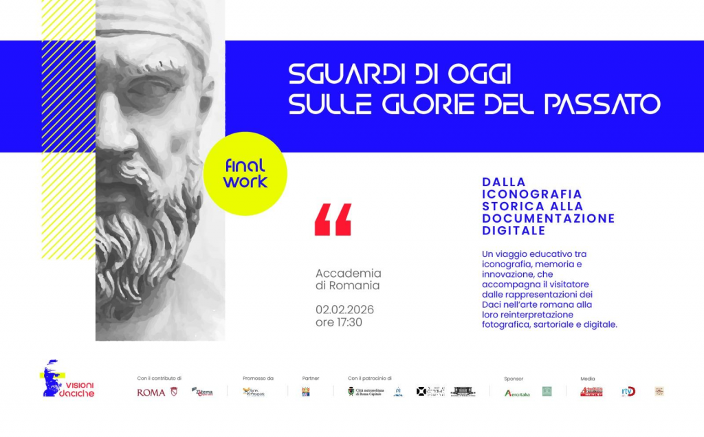 Accademia di Romania in Roma, în colaborare cu Asociația „Spirit Românesc” și cu patronajul Ambasadei României în Italia, are plăcerea de a vă invita la vernisajul expoziției „Viziuni Dacice”, un proiect cultural și educațional care propune noi perspective asupra marilor monumente ale Romei, reinterpretate prin privirea tinerelor generații.