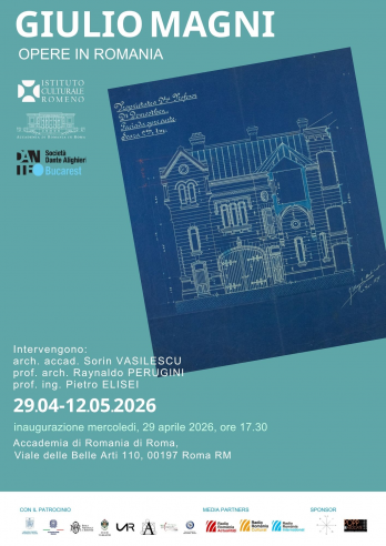 Mostra fotodocumentaria Giulio Magni. Opere in Romania 29 aprile - 12 maggio 2026 Accademia di Romania a Roma Viale delle Belle Arti 110L'Accademia di Romania in Roma - rappresentanza dell'Istituto Culturale Romeno, in collaborazione con l'Università