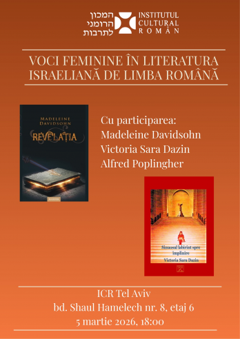 Pentru a marca Ziua Internațională a Femeii, Institutul Cultural Român de la Tel Aviv organizează două evenimente literare distincte, reunite sub titlul „Voci feminine în literatura israeliană de limbă română”, dedicate unor autoare de limbă română care