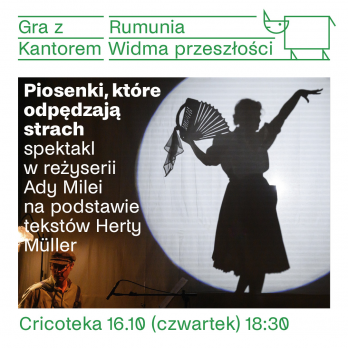 Joi, 16 octombrie, ora 18:30 - spectacolul-concert „Cântece de speriat frica”, de Ada Milea, după texte de Herta Müller (Teatrul Național „Lucian Blaga” din Cluj-Napoca)
