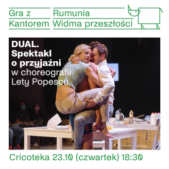 Joi, 23 octombrie, ora 18:30 - spectacolul „DUAL. Un performance despre prietenie”, concept de Leta Popescu, Bogdan Spătaru și Florin Fieroiu (Teatrelli, 2022)