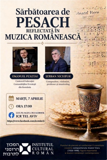 Conferința online „Sărbătoarea de Pesach reflectată în muzica românească”, eveniment organizat de ICR Tel Aviv