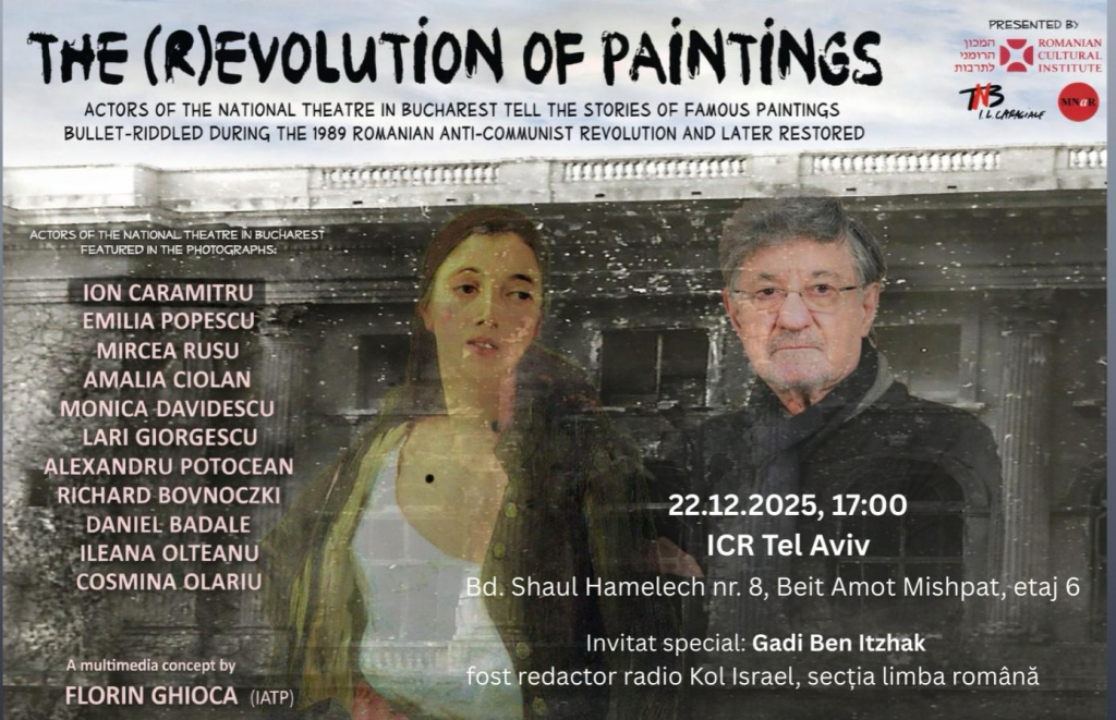 Institutul Cultural Român de la Tel Aviv organizează, în data de 22 decembrie 2025, de la ora  17:00, un eveniment dedicat marcării Revoluției române din 1989, prilejuit de prezentarea expoziției multimedia „(R)Evoluția tablourilor”.  Evenimentul va avea loc la sediul ICR Tel Aviv și va include proiecția materialelor video care însoțesc expoziția, dedicate unor lucrări de patrimoniu din colecția Muzeului Național de Artă al României, semnate de pictori precum Ștefan Luchian, Theodor Aman, Ioan Andreescu, Sava Henția și G.D. Mirea, afectate de violențele din decembrie 1989 și ulterior restaurate.
