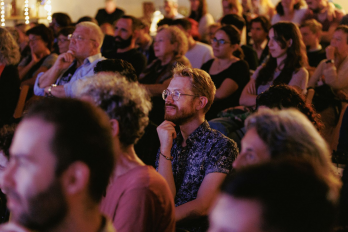 Conferențiarul serii a fost profesorul israelian Eran Katz, care a captivat publicul cu un discurs referitor la modul în care uneori greșit învățăm o limbă străină, tehnici de memorare și interferențe lingvistice în diversa realitate israeliană. Katz a prezentat expresii de origine europeană (inclusiv română) intrate în ebraica modernă, demonstrând modul în care limbile circulă, se contaminează și se reinventează. El a provocat publicul la un joc de memorie bazat pe asocieri între cifre și litere – o tehnică ludică și ingenioasă de învățare.