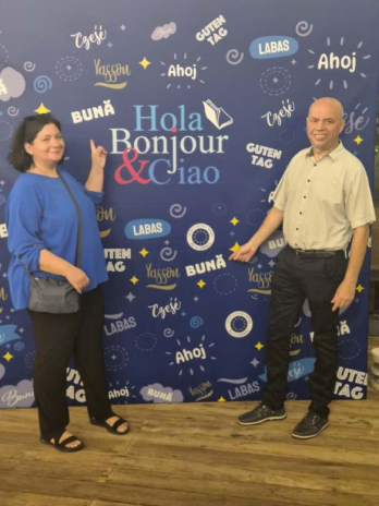 În continuarea programului, vizitatorii au fost invitați să se alăture standurilor dedicate fiecărei limbi europene. Standul României, organizat de Institutul Cultural Român din Tel Aviv, a oferit vizitatorilor o experiență practică și interactivă de inițiere în limba română. Activitatea principală a fost o sesiune de „speak dating”, unde participanții au fost ghidați printre primele expresii în limba română: formule de salut, întrebări simple și expresii de politețe. Cei care s-au oprit la stand au fost încurajați să rostească replici de bază precum „Bună!”, „Mulțumesc!”, „Cum te cheamă?”, descoperind în mod direct sonoritatea limbii și dinamica sa.