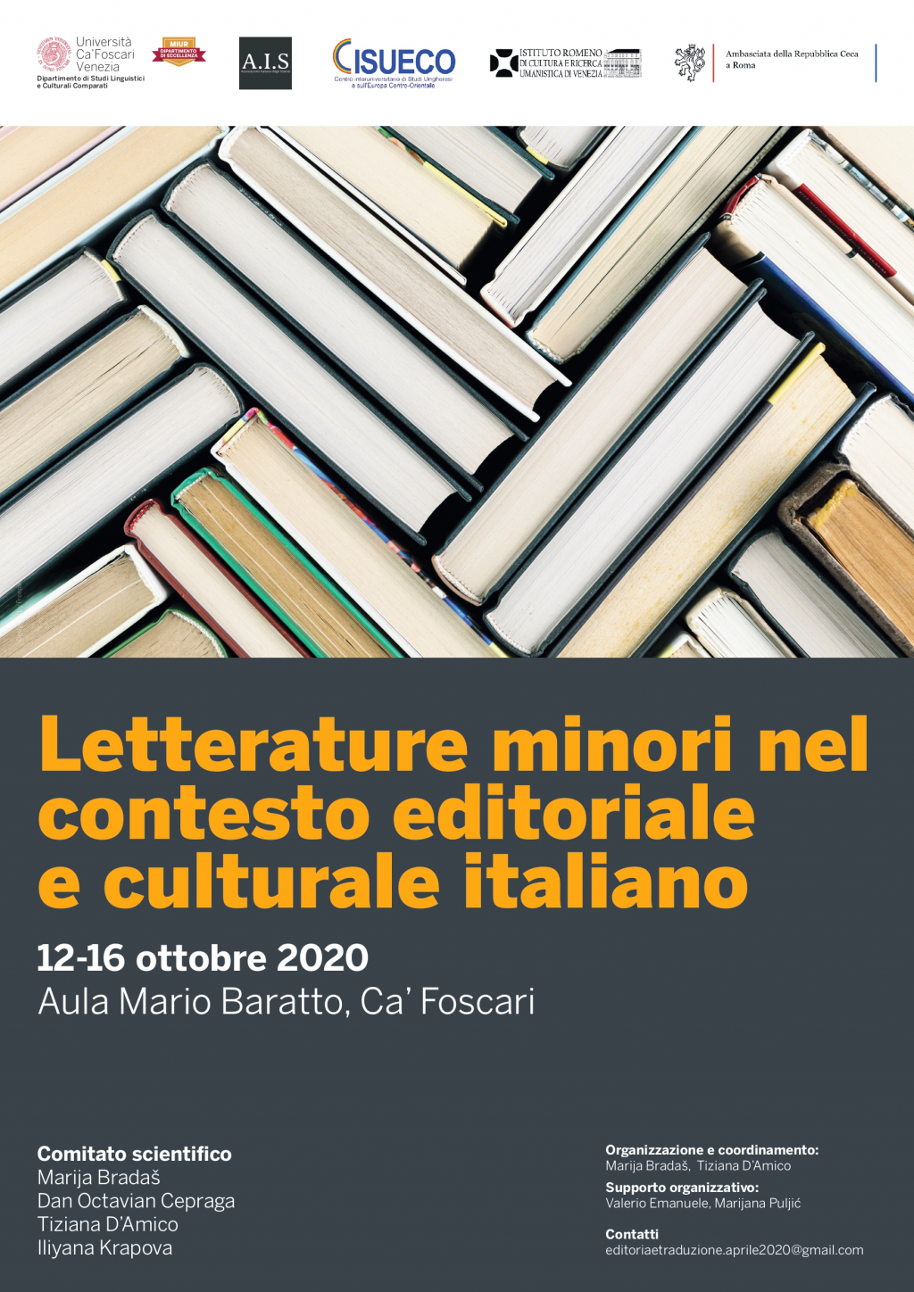 Conferinţa „Literaturi minore în context cultural şi editorial italian: publicare şi traducere“, organizată în parteneriat cu IRCCU Veneția, se desfășoară la Universitatea Ca’ Foscari din Veneţia, Sala Baratto, în perioada 12-16 octombrie 2020.
