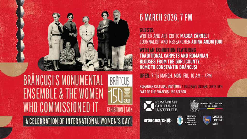 Al doilea eveniment din seria „Brâncuși 150”, organizat cu ocazia Zilei Internaționale a Femeii și realizat în parteneriat cu Primăria Târgu Jiu, aduce în prim-plan un capitol remarcabil, dar adesea trecut cu vederea în patrimoniul cultural românesc: rolul decisiv al femeilor în realizarea Ansamblului Sculptural de la Târgu Jiu, inclus în 2024 pe Lista Patrimoniului Mondial UNESCO.