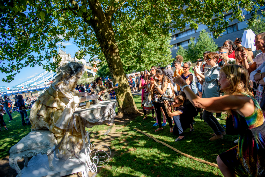 Prezentarea spectacolului Zidul si a unui ansamblu de statui vivante - Teatrul Masca in cadrul weekend-ului Night of the Festivals - Southbank, Londra