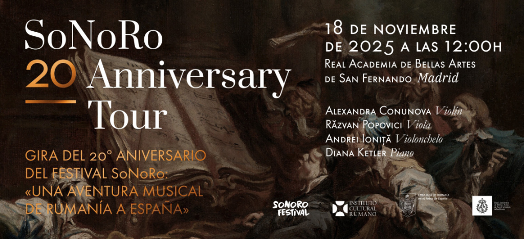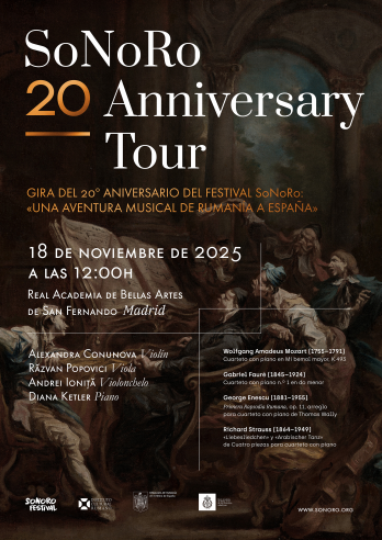 Proiectul SoNoRo 20 Anniversary Tour aduce în prim-plan cultura română și promovează muzica de cameră ca limbaj universal, capabil să creeze conexiuni între artiști și publicul din spații culturale diferite. Turneul aniversar subliniază dimensiunea proiectului, prin prezența pe una dintre cele mai prestigioase scene Spania și din Europa. Înființată în 2008 de către violonistul Răzvan Popovici, Asociația SoNoRo se distinge prin organizarea de festivaluri și concerte care reunesc artiști internaționali și tineri muzicieni talentați, contribuind la îmbogățirea vieții culturale din România și din alte țări europene.