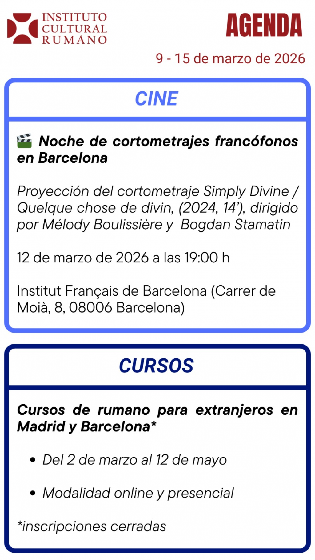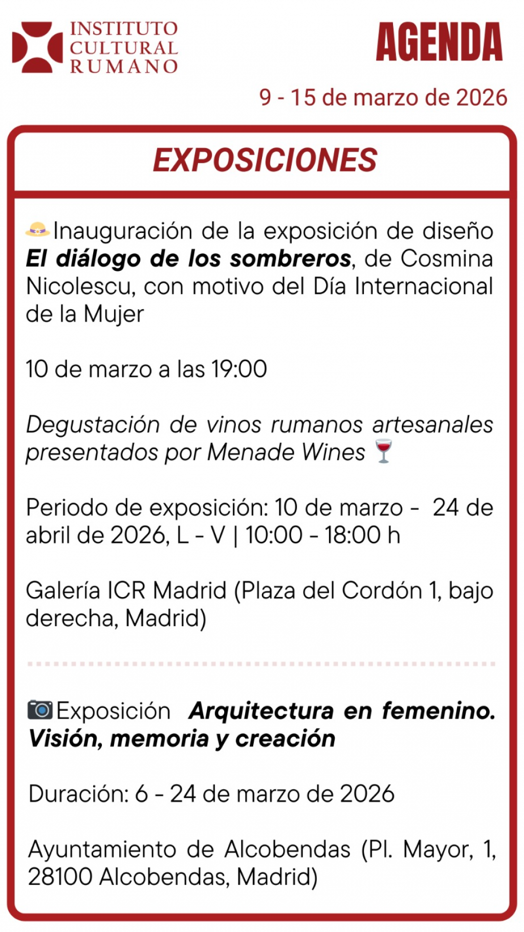 Agenda saăptămânală a ICR Madrid, 9 -15 martie 2026