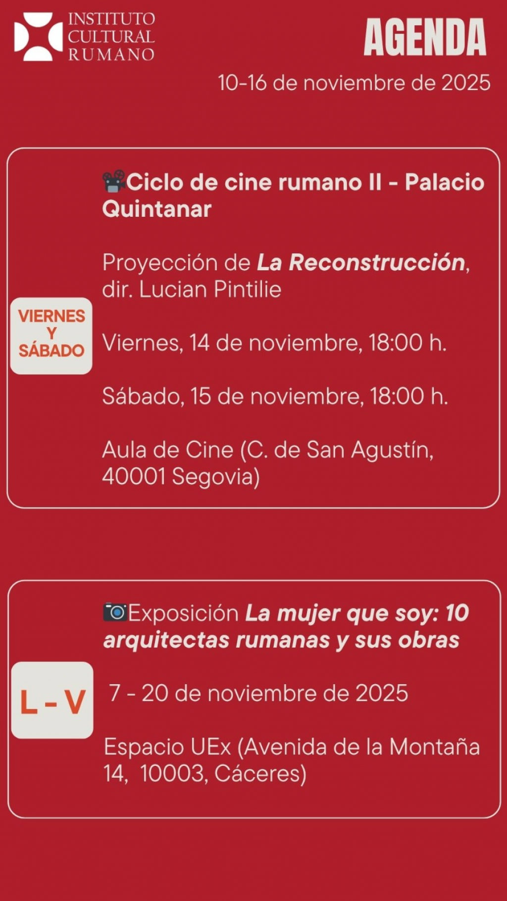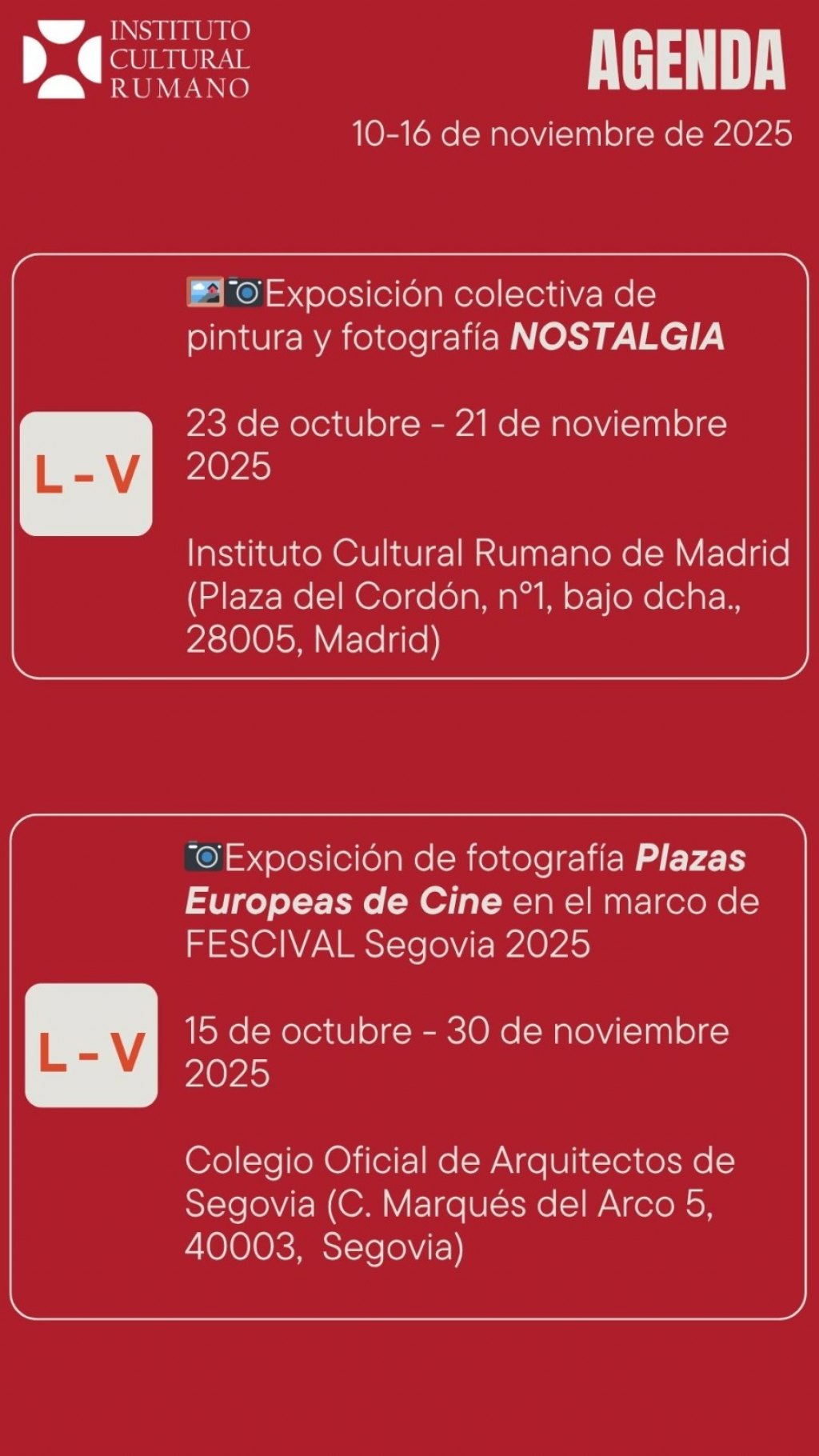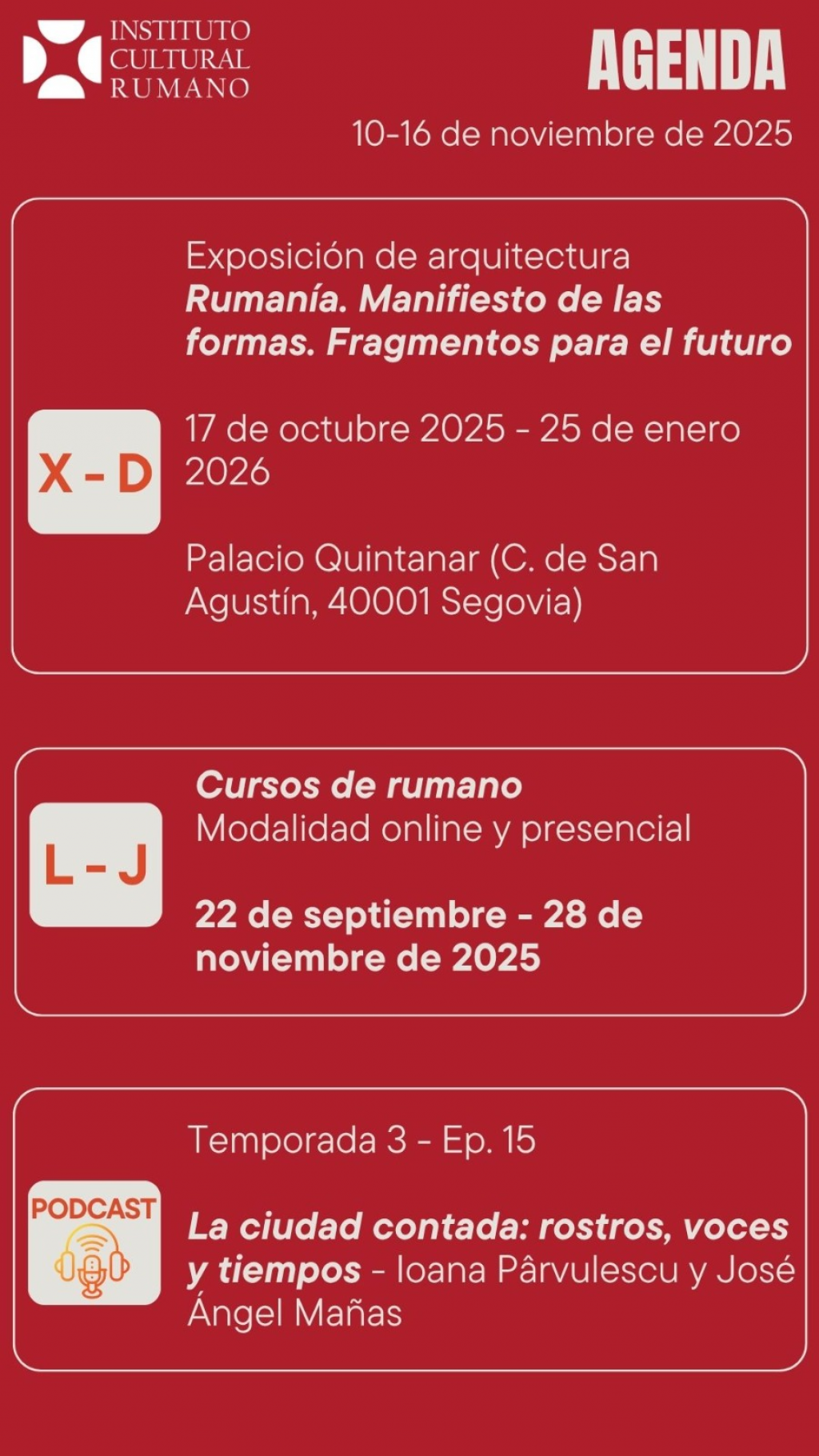 Agenda săptămânală, 10 - 16 noiembrie 2025