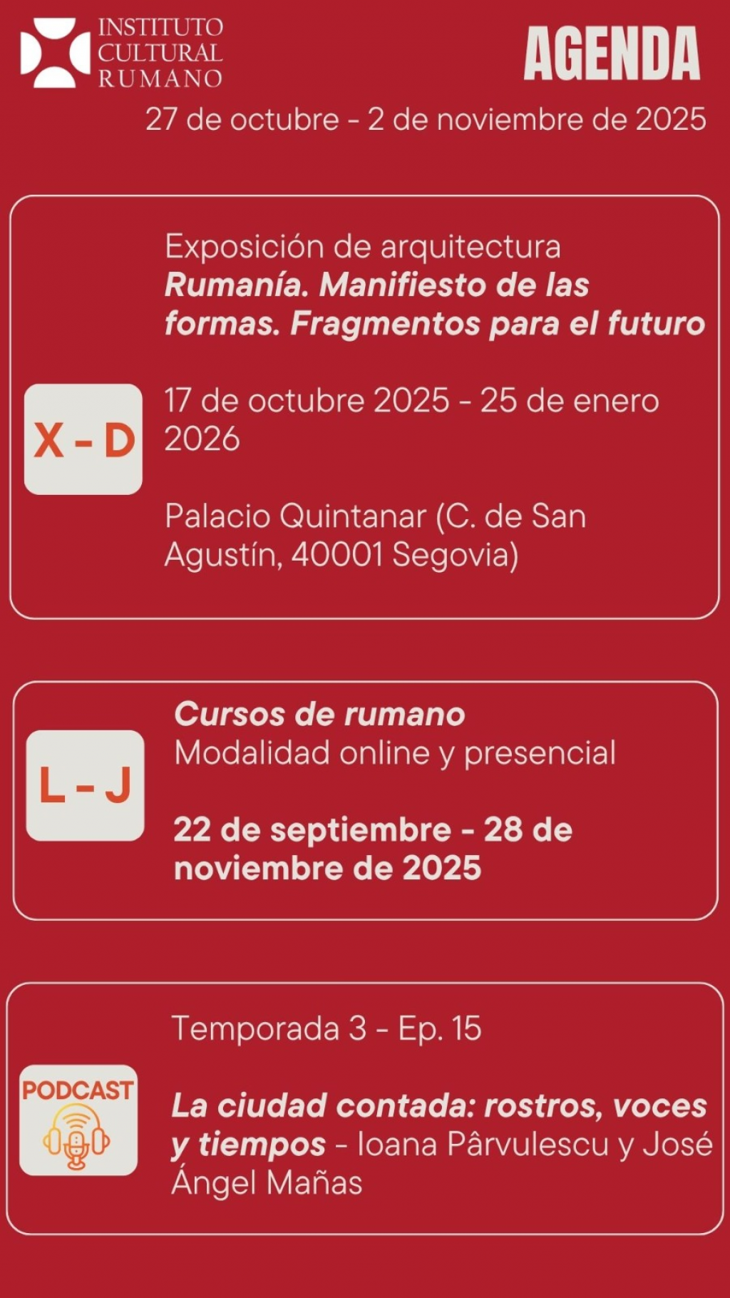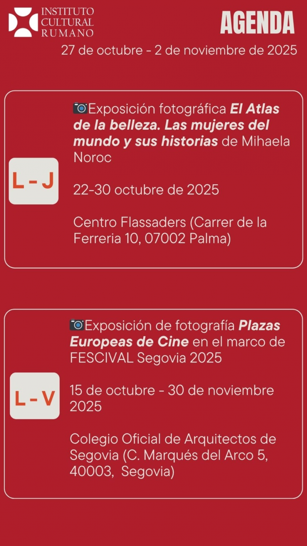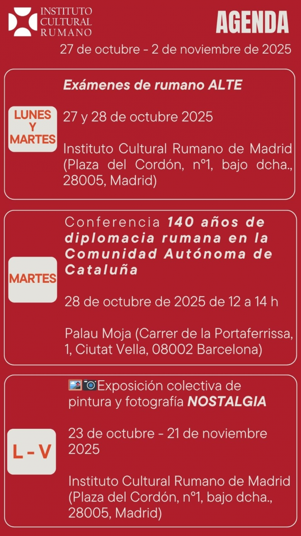 Agenda săptămânală, 28 octombrie-2 noiembrie 2025