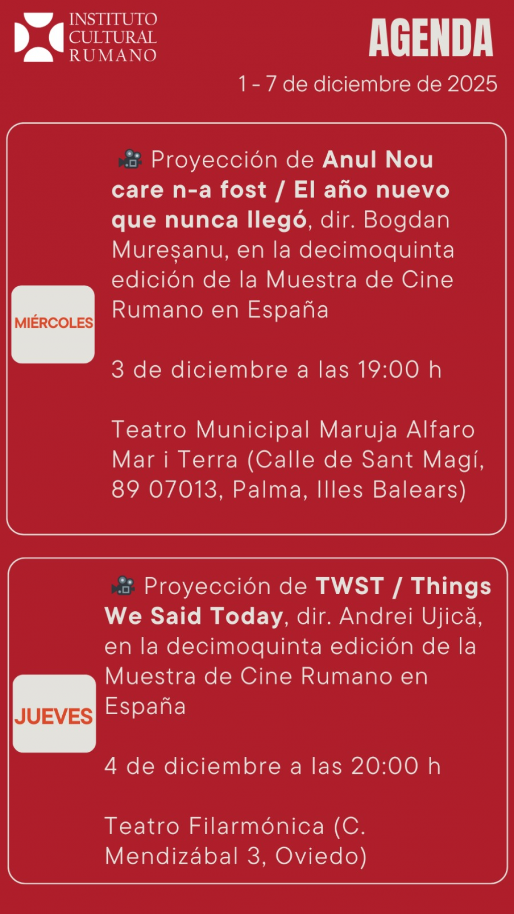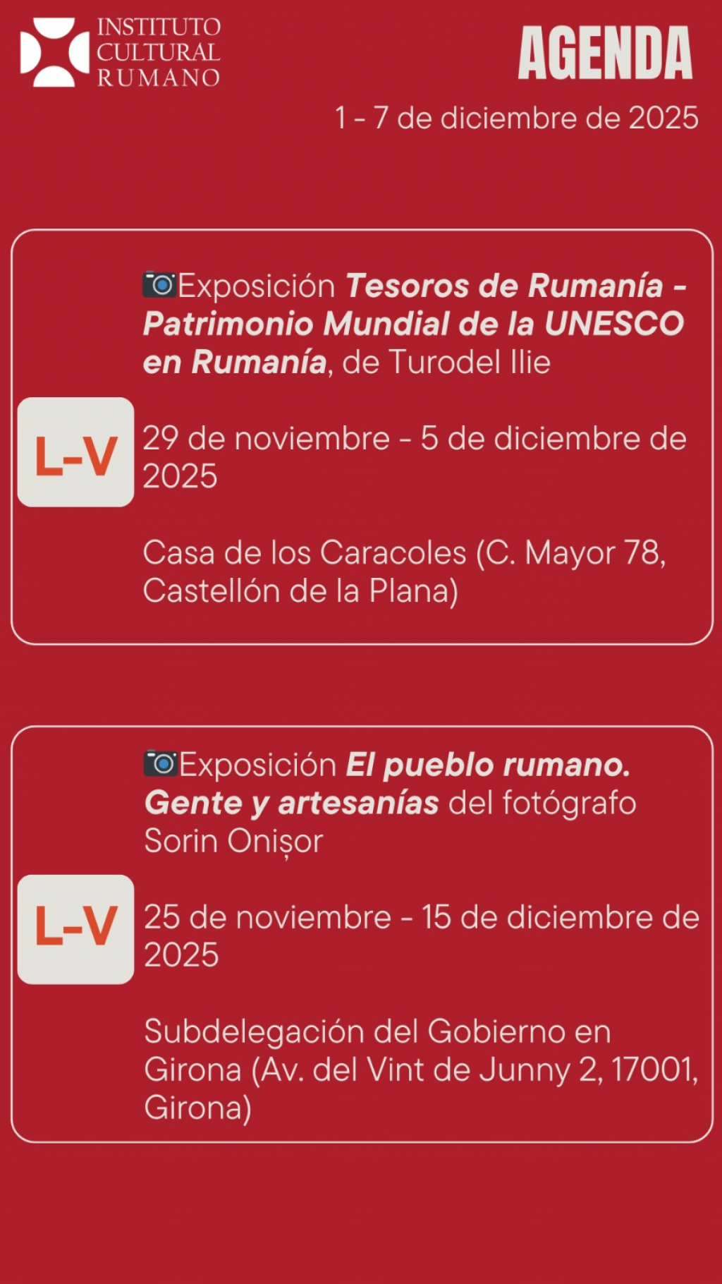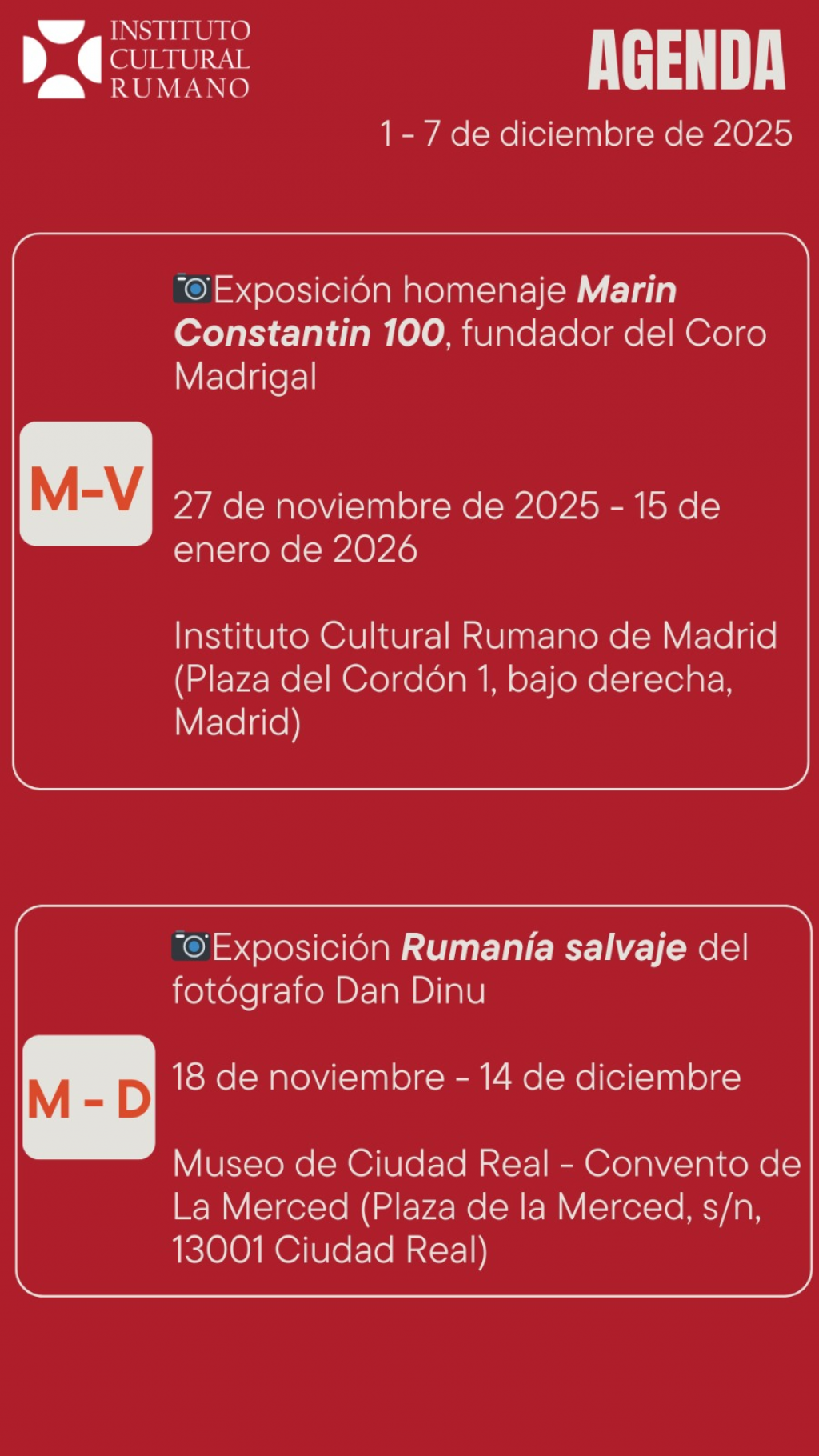 Agenda săptămânală a ICR Madrid, 1- 7 decembrie 2025