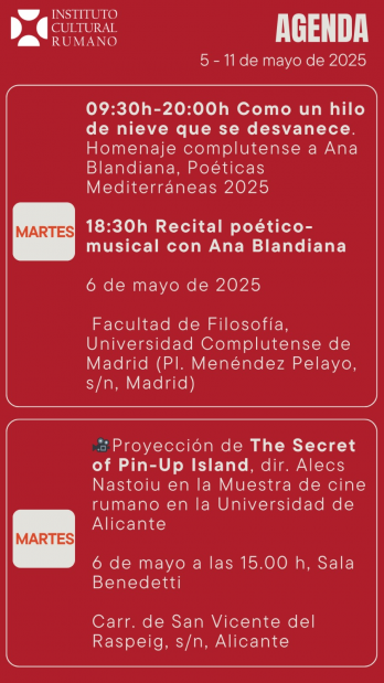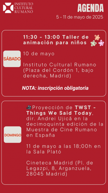 Agenda săptămânală a ICR Madrid, 5- 10 mai 2025