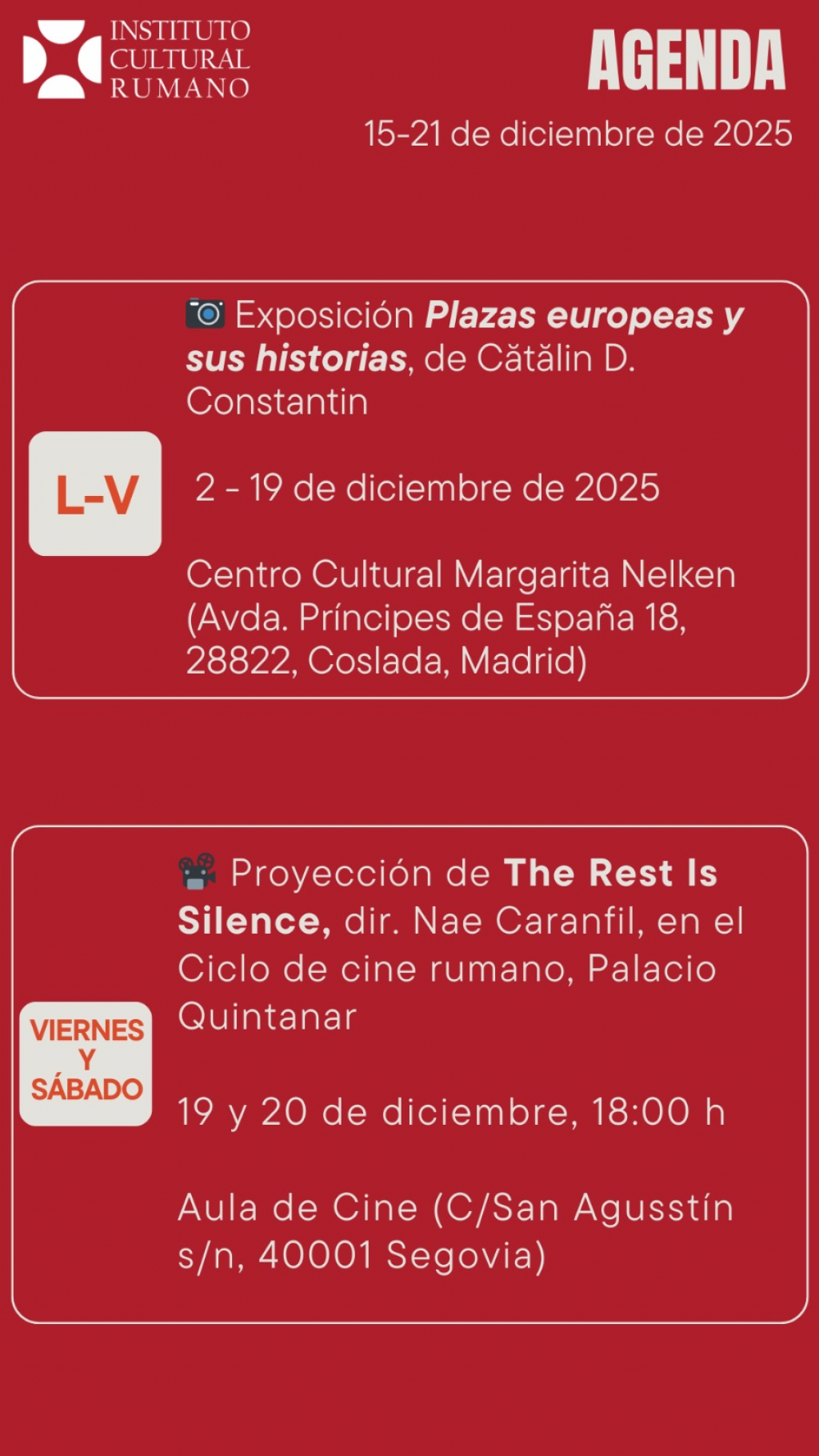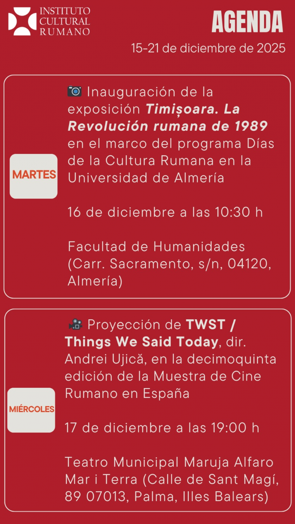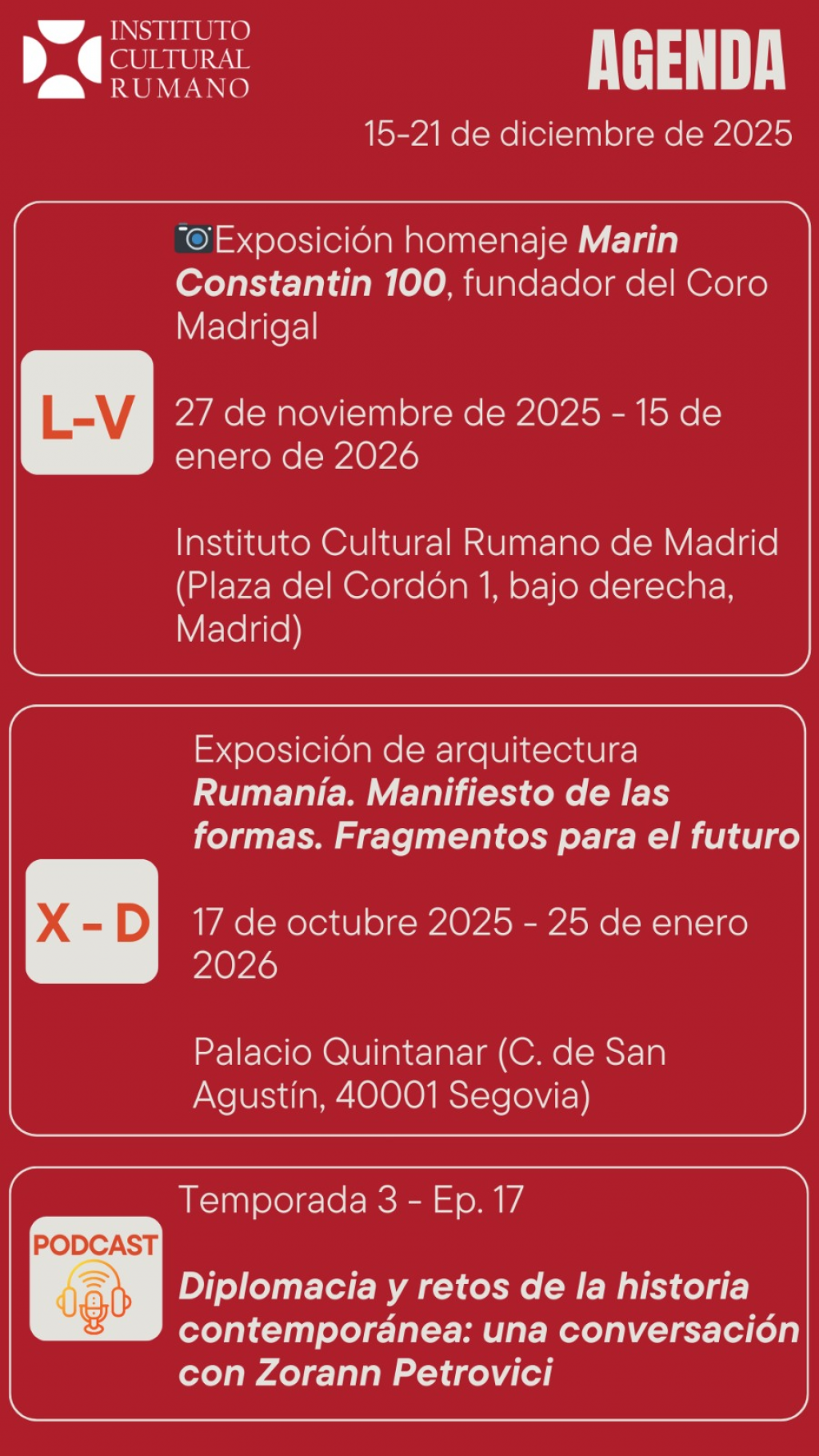 Agenda săptămânală a ICR Madrid în perioada 15-19 decembrie 2025
