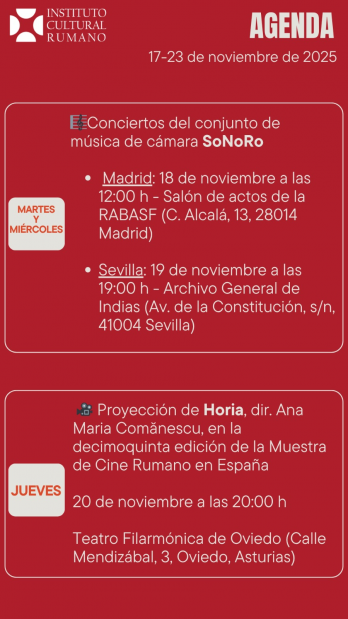 - Etichete Agenda semanal Actividades culturales ICR Madrid Cultura rumana Proyectos