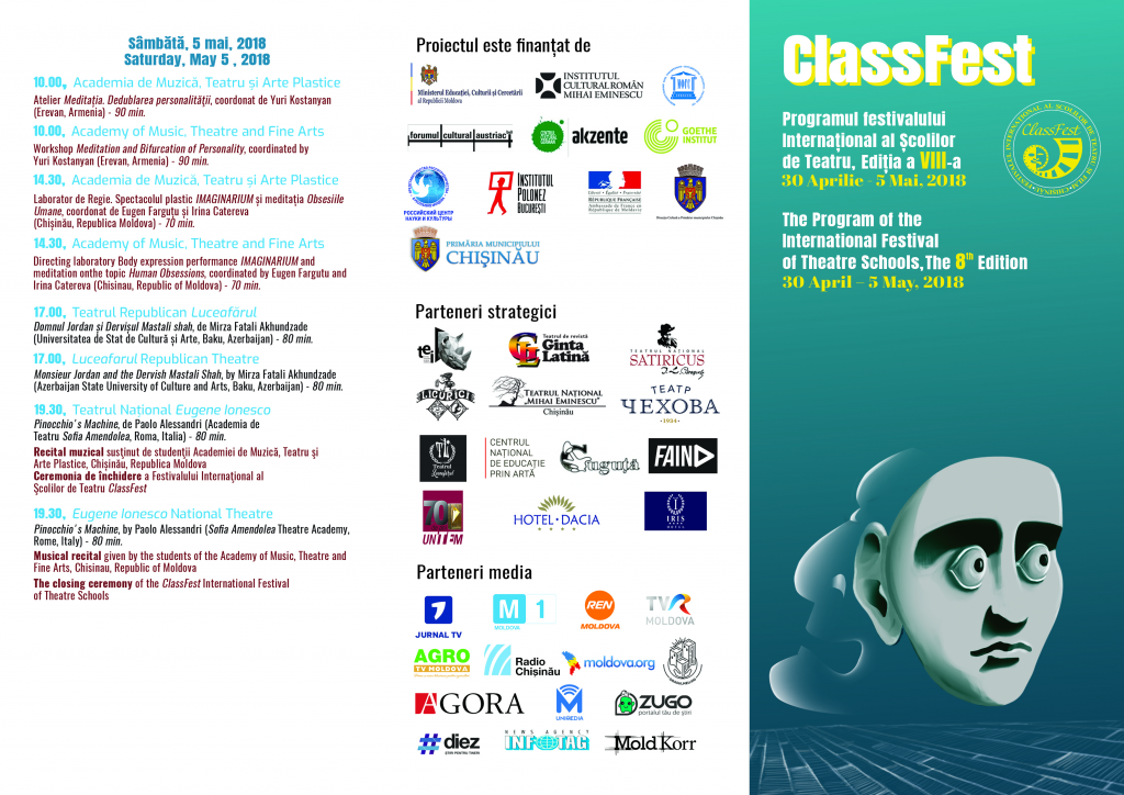 Institutul Clutural Român „Mihai Eminescu” la Chișinău sprijină participarea a patru școli românești de teatru: Universitatea de Arte din Tîrgu-Mureş; Universitatea de Arte „George Enescu”, Iaşi, Universitatea Națională de Artă Teatrală și Cinematografică „I.L.Caragiale” din București şi Universitatea „Babeş-Bolyai” din Cluj-Napoca la cea de-a opta ediție a Festivalului Internaţional al Şcolilor de Teatru și Film „ClassFest”.