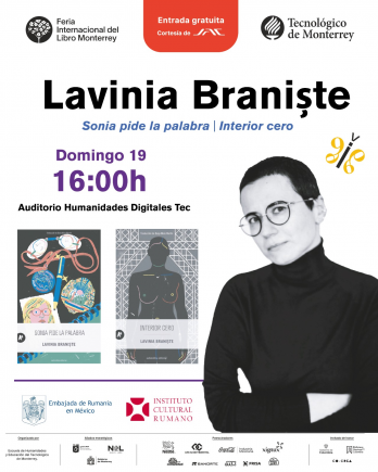 Institutul Cultural Român anunță participarea scriitoarei Lavinia Braniște la cea de-a 33-a ediție a Târgului Internațional de Carte de la Monterrey (FILMTY 2025), desfășurată în perioada 11–19 octombrie 2025 în Mexic. Evenimentul, organizat de prestigioasa
