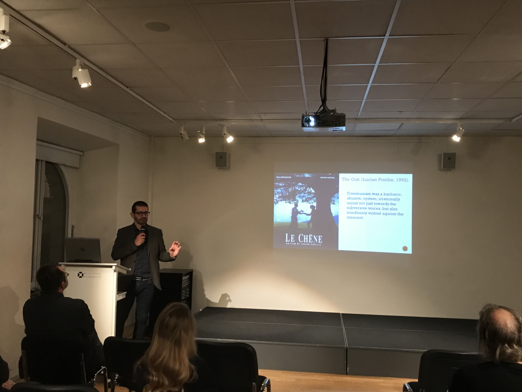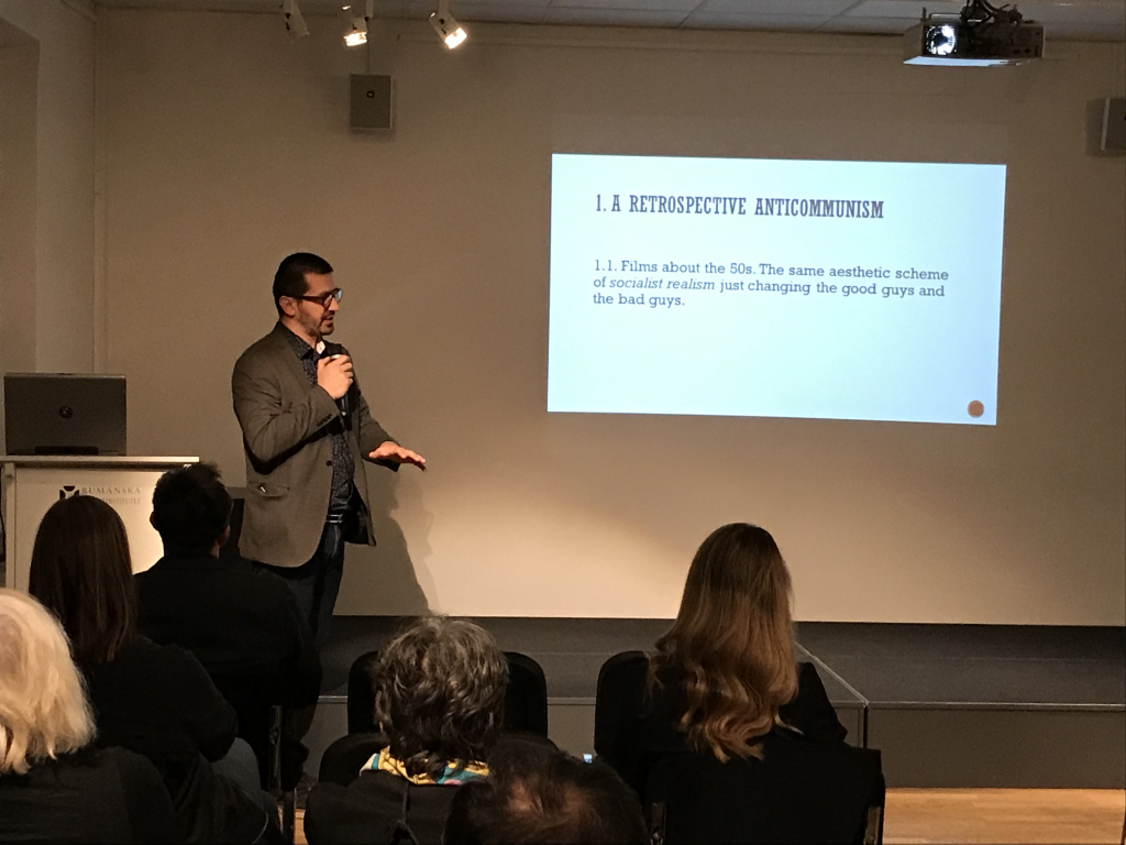 Deși foarte influentă și activă în regândirea instituțiilor culturale și economice după căderea regimului comunist, tema anticomunismului a fost evitată în dezbaterea publică pentru mult timp. Explorând aproximativ 15 filme românești inovatoare din anii ’90, precum și exemple clasice din noul val al cinematografiei românești ca un caz tipic al unei abordări orientate către cinematografele mici, conferința conferențiarului Claudiu Turcuș încearcă să surmonteze acest neajuns prin evaluarea și investigarea relevanței reprezentărilor asupra comunismului în formarea memoriei colective a trecutului.