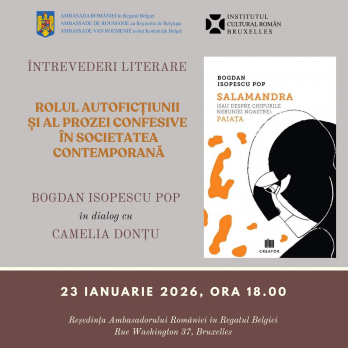 ICR Bruxelles, în colaborare cu Ambasada României în Regatul Belgiei, continuă seria întâlnirilor literare la Reședința Ambasadorului României în Regatul Belgiei, cu un nou eveniment dedicat literaturii române contemporane: „Rolul autoficțiunii și