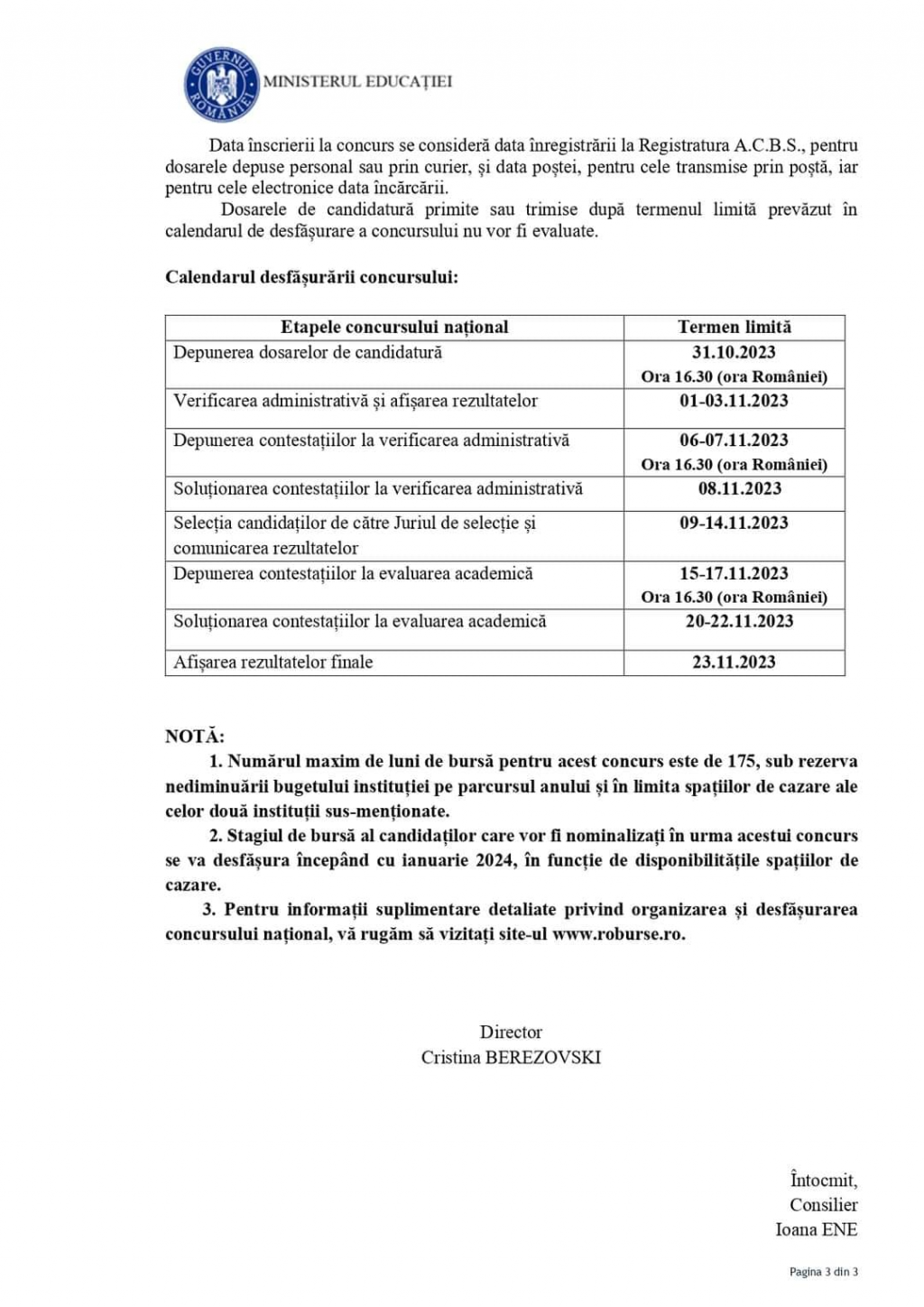 Termenul limită pentru depunerea candidaturilor este 31 octombrie 2023.