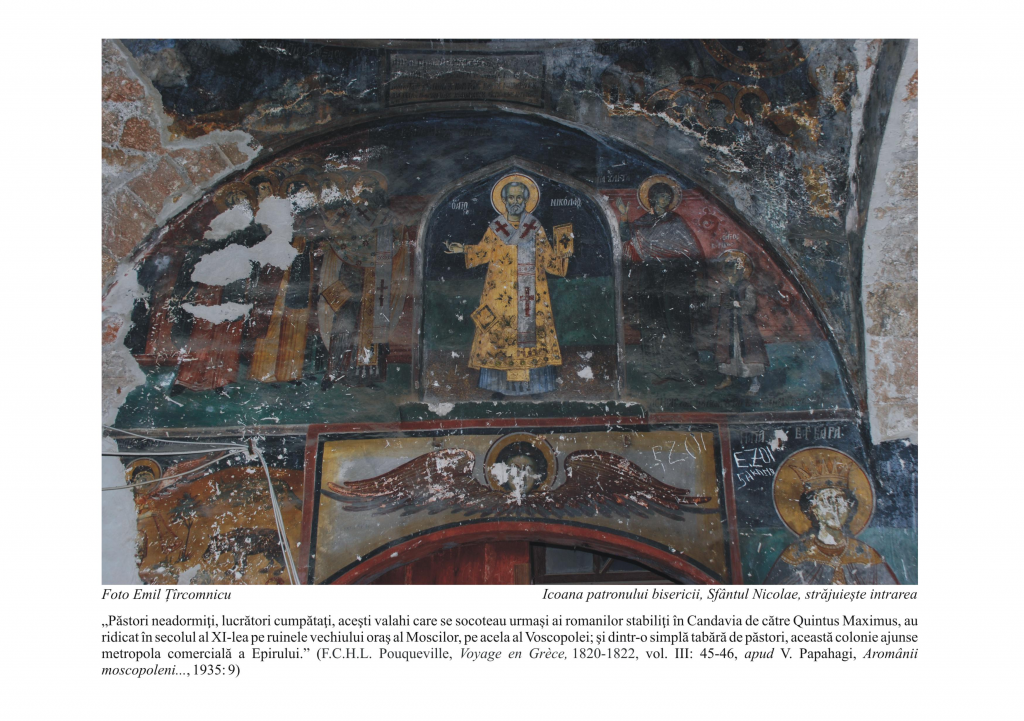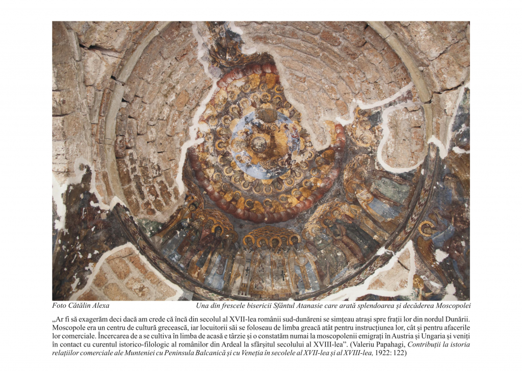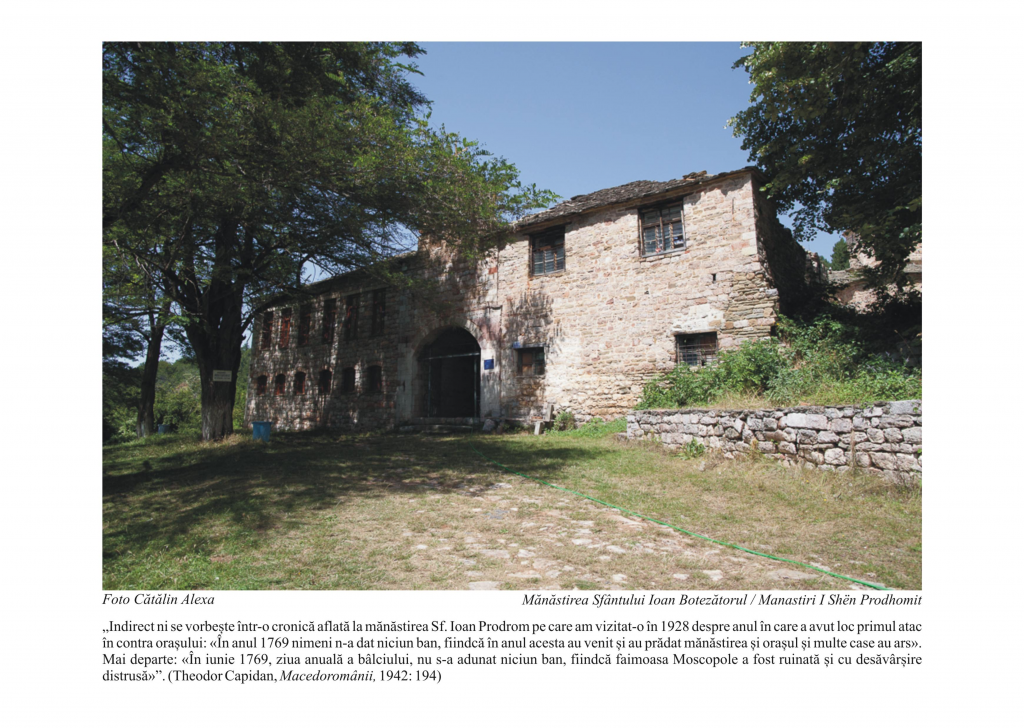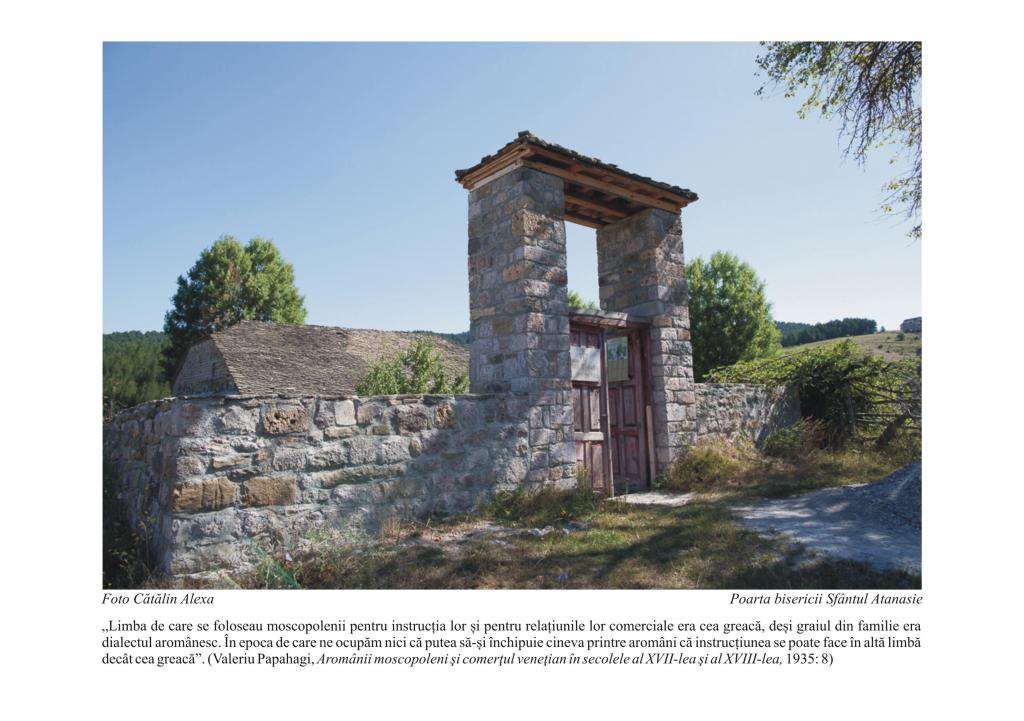 Proiectul „Moscopole – patrimoniu cultural al romanităţii balcanice”, organizat de Compartimentul Comunități Istorice din cadrul Institutului Cultural Român, presupune realizarea unei expoziţii online dedicate oraşului aromânilor, Moscopole, cel mai important centru cultural şi comercial al aromânilor din Peninsula Balcanică în secolul al XVIII-lea. Expoziţia cuprinde fotografii în timpul unei cercetări efectuate de Emil Ţîrcomnicu şi Cătălin Alexa, cercetători la Institutul de Etnografie şi Folclor „C. Brăiloiu” al Academiei Române, fotografii ce ilustrează unele dintre cele mai importante monumente istorice ale vechiului oraş al aromânilor, Moscopole.