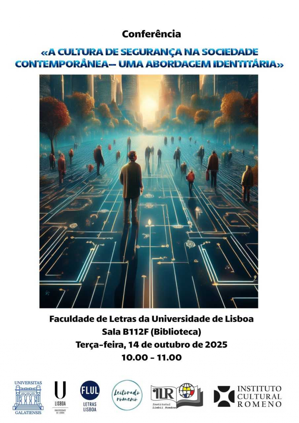 ICR Lisabona va organiza marți, 14 octombrie 2025, ora 10.00, la sediul Universității din Lisabona, conferința „Cultura de Securitate în Societatea Contemporană – O Abordare Identitară”, susținută de către Prof.univ.dr habil. Arthur Tuluș, Prof. dr. ing. DHC Cătălin Fetecău și Prof.univ. dr. Florin Tudor.