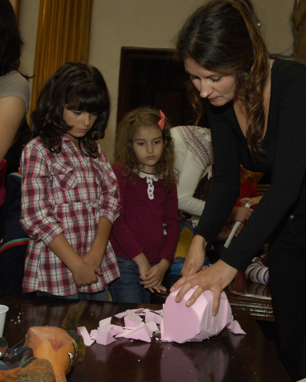 Ora 12.00 - Atelier de confecţionat păpuşi susţinut de actorii Teatrului „Anton Pann“ din Râmnicu VâlceaÎmpreună cu actorii care mânuiesc păpușile, copiii vor învăța întâi să asambleze părţile principale ale acestora, apoi să le mişte. Se va lucra pe mai multe tipuri de păpuşi.