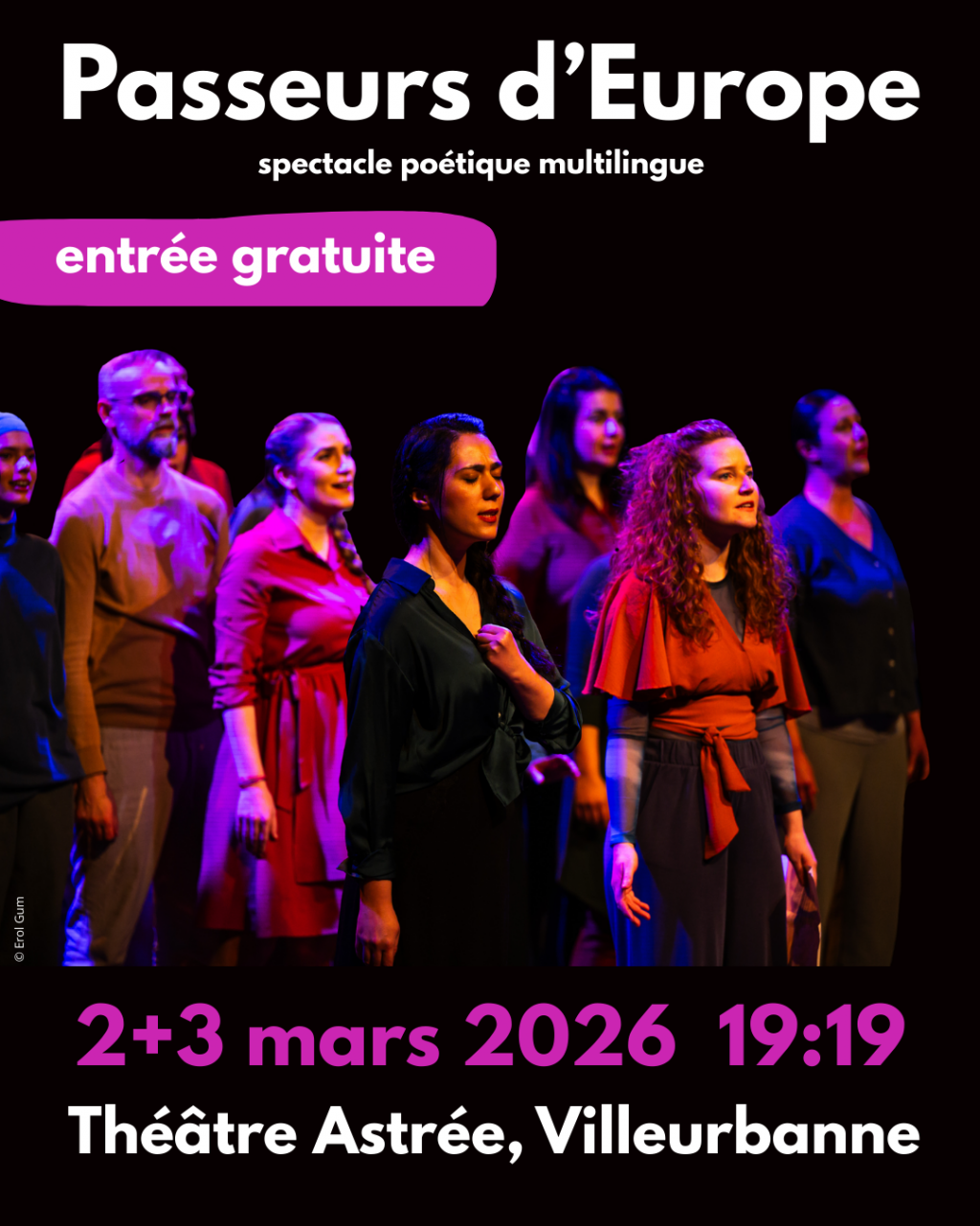 Festivalul Passeurs d’Europe va avea loc la Teatrul Astrée, 6 Avenue Gaston Berger, 69001, Villeurbanne, în zilele de 2 si 3 martie 2026 începând cu ora 19:19.