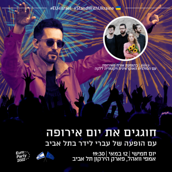 Ca urmare a situației internaționale și a conflictului din Ucraina, celebrarea Zilei Europei în Israel include o componentă culturală care reliefează sprijinul Delegației UE și al țărilor membre pentru poporul ucrainean. Manifestarea se desfășoară joi, 12 mai, ora 19.30, într-un nou format outdoor, la Amfiteatrul Wohl din parcul HaYarkon din Tel Aviv.