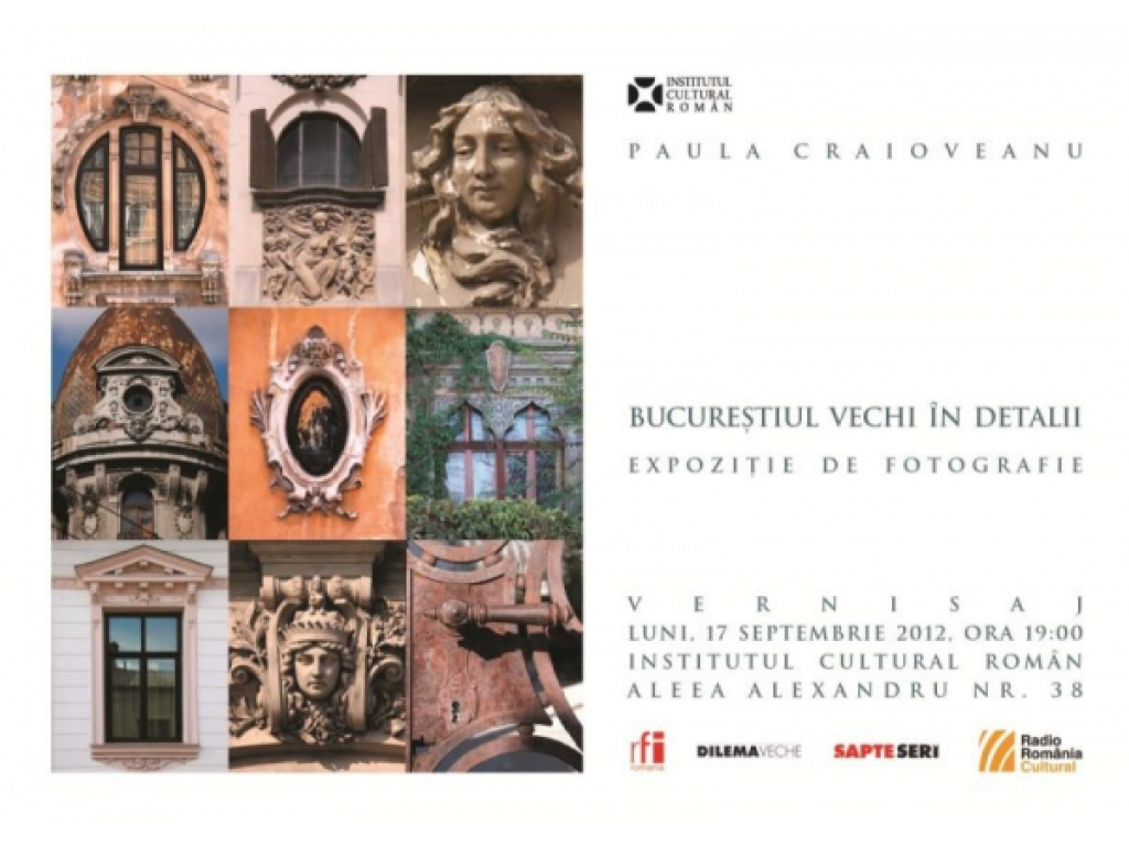 În perioada 17-30 septembrie 2012, Institutul Cultural Român (Aleea Alexandru 38, București) găzduiește expoziția de fotografie „Bucureștiul vechi în detalii“ semnată de Paula Craioveanu. Expoziția va fi vernisată luni, 17 septembrie, ora 19.00, în prezența criticului de artă Doina Mândru, director al Centrului Cultural „Palatele Brâncovenești“ de la Mogoșoaia.