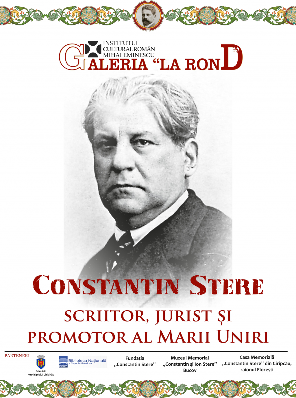 În cadrul vernisajului, acad. Valeriu Matei, director al ICR Chișinău, va susține o prelegere legată de personalitatea și opera lui Constantin Stere.