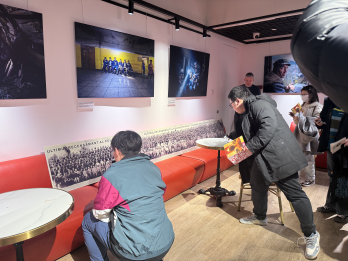Parcursul expozițional este completat de o instalație de artă semnată de Ion Barbu — un panou panoramic de mari dimensiuni, inspirat de o secvență din film. Lucrarea constă într-o intervenție digitală asupra unei fotografii de grup monumentale, în care artistul, împreună cu un colaborator, inserează chipuri ale unor personalități, generând un dialog vizual între trecut și prezent. Fotografia originală, achiziționată din China și oferită artistului de fiul său, Mihai Barbu, conferă lucrării o dimensiune simbolică aparte, stabilind o legătură directă cu spațiul cultural chinez.