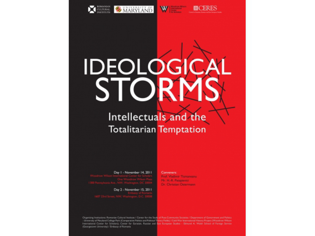 The Romanian Cultural Institute in cooperation with the Center for the Study of Post-Communist Societies (under the directorship of Professor Vladimir Tismaneanu) at the University of Maryland (College Park), the Cold War International History Project (Woodrow Wilson International Center for Scholars), Georgetown University (CERES), and the Embassy of Romania in the US are organizing the conference Ideological Storms: Intellectuals and the Totalitarian Temptation, which will take place on November, 14-15, 2011, in Washington D.C.