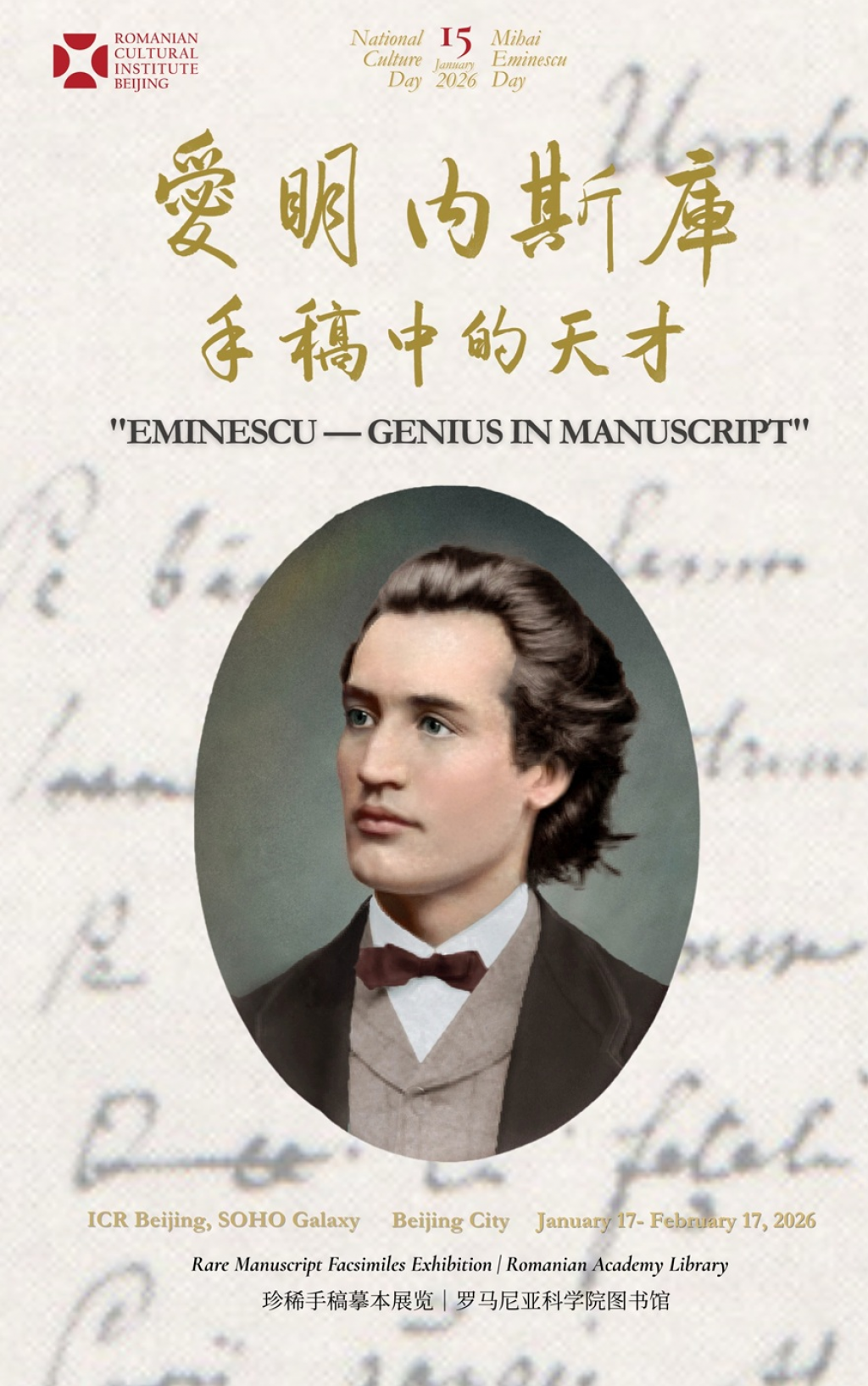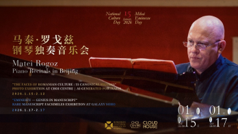 Institutul Cultural Român de la Beijing organizează, în perioada 15-18 ianuarie, două recitaluri susținute de pianistul Matei Rogoz, precum și două expoziții. Primul eveniment va avea loc la Cloud House din cadrul Choi Centre din Beijing joi, 15 ianuarieși va include recitalul pianistului Matei Rogoz și vernisajul expoziției de fotografie „15 Mari Personalități ale Culturii Române”. Sâmbătă, 17 ianuarie 2026, ICR Beijing va găzdui cel de-al doilea recital al pianistului Matei Rogoz și expoziția „Eminescu – Geniul în manuscris”, cu fotocopii după facsimile rare din colecțiile Bibliotecii Centrale Universitare „Mihai Eminescu” din Iași și ale Bibliotecii Academiei Române, provenite din celebra ladă a poetului donată Academiei Române de Titu Maiorescu.