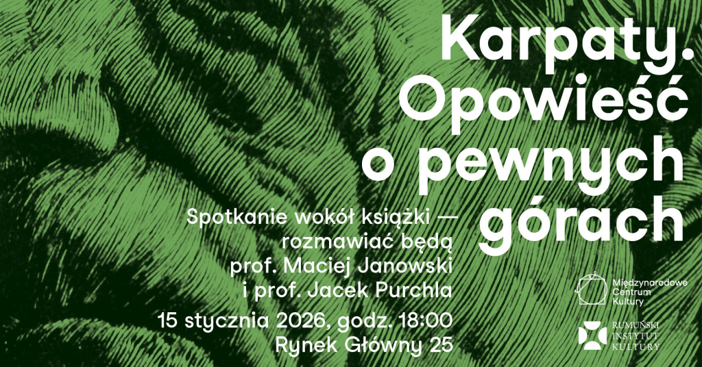 Cu ocazia Zilei Culturii Naționale, Institutul Cultural Român de la Varșovia propune publicului polonez un eveniment care are în centru una dintre cele mai importante premiere editoriale în Polonia: volumul Carpații. Povestea unor munți al profesorului Maciej Janowski, publicat de Centrul Internațional pentru Cultură de la Cracovia în prestigioasa serie Biblioteka Europy Środka / Biblioteca Europei Centrale. Evenimentul, organizat în data de 15 ianuarie la Centrul Internațional pentru Cultură de la Cracovia, îi va aduce în fața publicului pe autorul cărții, prof. Maciej Janowski, în dialog cu prof. Jacek Purchla, fondatorul și directorul, timp de 27 de ani, al Centrului cracovian.