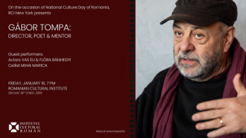 Cu prilejul Zilei Culturii Naționale, Institutul Cultural Român de la New York organizează vineri, 16 ianuarie 2026, la sediul său din Manhattan, un eveniment dedicat personalității complexe a omului de teatru Gábor Tompa – regizor de prestigiu internațional, poet și mentor apreciat, profesor de regie pentru generații de artiști. Programul va include un dialog amplu despre biografia și opera sa, ilustrat prin poeziile autorului și prin imagini din producțiile sale teatrale reprezentative. În paralel, evenimentul va explora universul poetic care l-a format pe artist prin lecturi din poeții săi preferați. Poeziile vor fi recitate, în maghiară, română și engleză, de actorul româno-american Vas Eli și de actrița maghiaro-americană Flóra Bánhegyi. Atmosfera va fi întregită de un moment muzical live, susținut de violoncelistul româno-american Mihai Marica. Partener: Institutul Liszt din New York.