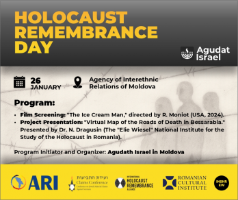Institutul Cultural Român „Mihai Eminescu“ de la Chișinău și Agudat Israel din Moldova organizează, în perioada 26-27 ianuarie 2026, o serie de evenimente menite să contribuie la conservarea memoriei istorice și la educarea publicului în spiritul asumării responsabile a trecutului. Momentul central al programului este conferința „Pe drumurile morții în Basarabia”, organizată în data de 26 ianuarie 2026, ora 15:00, la Agenția Relații Interetnice din Chișinău, susținută de Nicolae Drăgușin, doctor în Filosofie și doctorand în Științe Politice, expert în studiul Holocaustului. Conferința va include prezentarea hărții virtuale „Roads of Death in Bessarabia” – o inițiativă de documentare istorică a rutelor deportărilor evreilor din nordul Basarabiei către lagărele din Transnistria, proiect realizat în anul 2025 de organizația Agudat Israel în Moldova și susținut de parteneri de prestigiu: Claims Conference, International Holocaust Remembrance Alliance (IHRA), Guvernul Germaniei și Matanel Foundation. Harta este disponibilă în patru limbi – română, engleză, rusă și ebraică – și acoperă peste 20 de localități din nordul Republicii Moldova și din Transnistria. Vor lua cuvântul în deschidere Michael Finckel, reprezentant al Agudat Israel din Moldova, și Marina Anukov, șefa Biroului de Reprezentare NATIV în Republica Moldova. De asemenea, în cadrul evenimentului va fi proiectat scurtmetrajul biografic The Ice Cream Man (2024), scris și regizat de Robert Moniot, bazat pe fapte reale, care spune povestea unui evreu olandez devenit ținta „Măcelarului din Lyon“ după invazia nazistă în Olanda. Un al doilea eveniment, dedicat liceenilor, va avea loc marți, 27 ianuarie 2026, la Cineplex Loteanu din Chișinău: proiecția dramei istorice Razia,regia Roselyne Bosch (La Rafle, 2010), despre cea mai mare razie și operațiune de arestare în masă de evrei realizată în Franța în timpul celui de Al Doilea Război Mondial, în 1942.